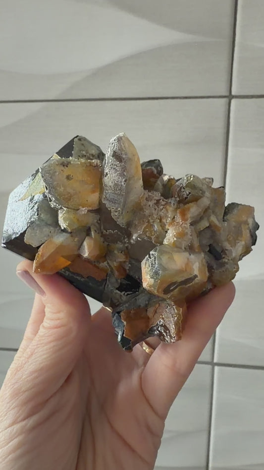 Hyalite on Smoky Quartz, Schorl from Erongo Region, Namibia